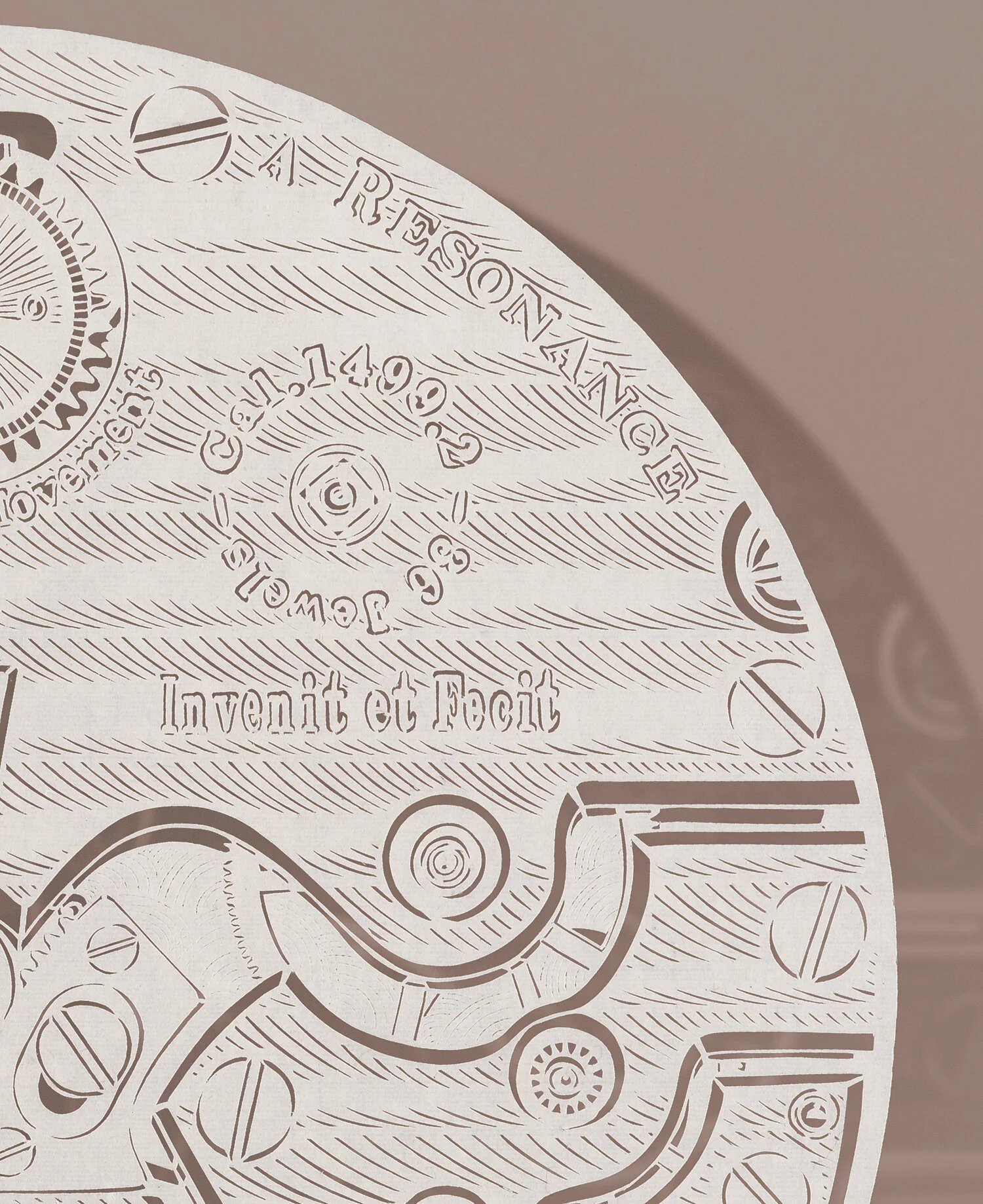 Enblem of Invenit et Fecit (invented and made) and Chronomètre À Résonance (resonance chronometer)