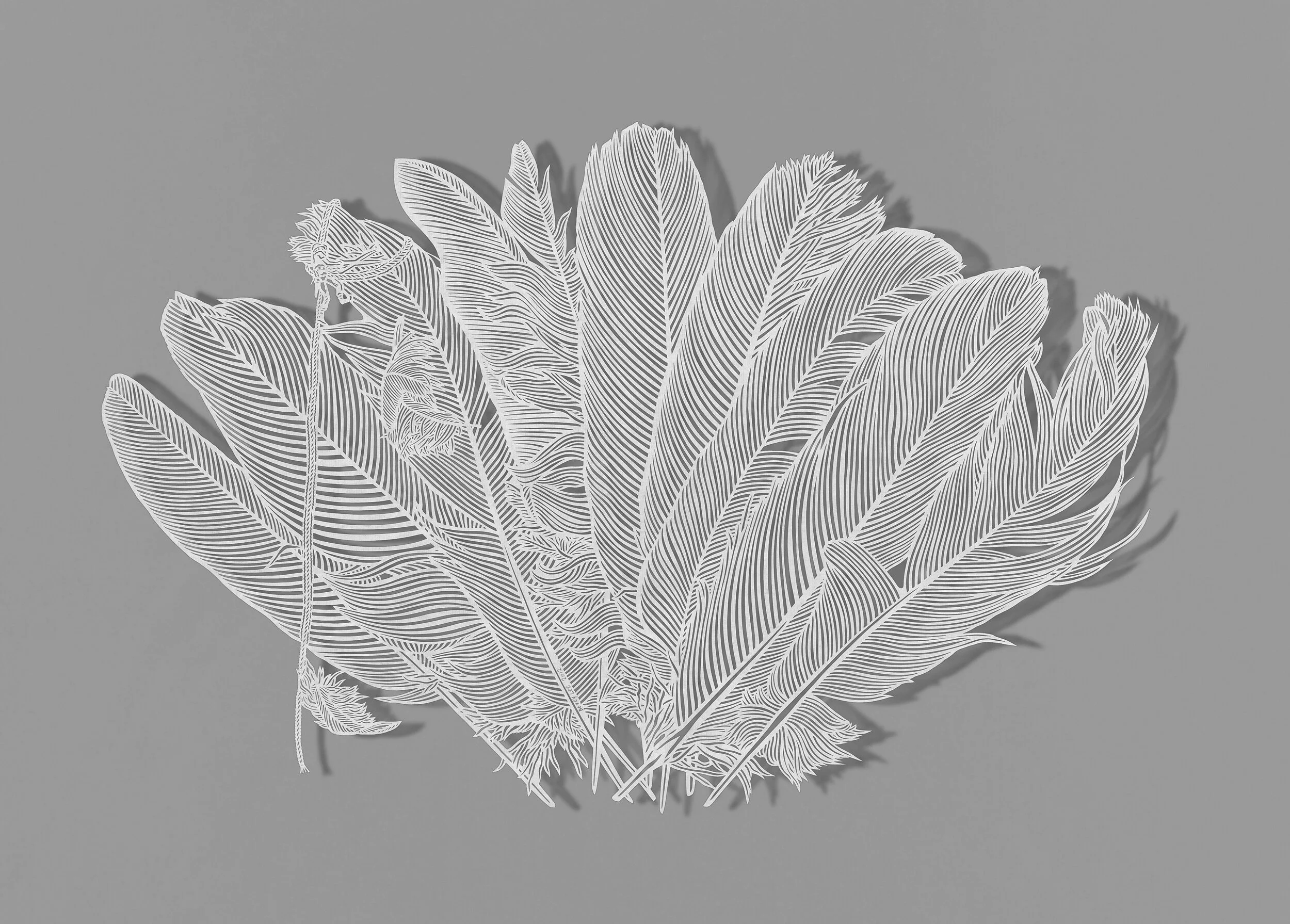Trimming Feathers 2012Chinese Xuan paper on silk25x16.25 in View fullsize View fullsize View fullsize