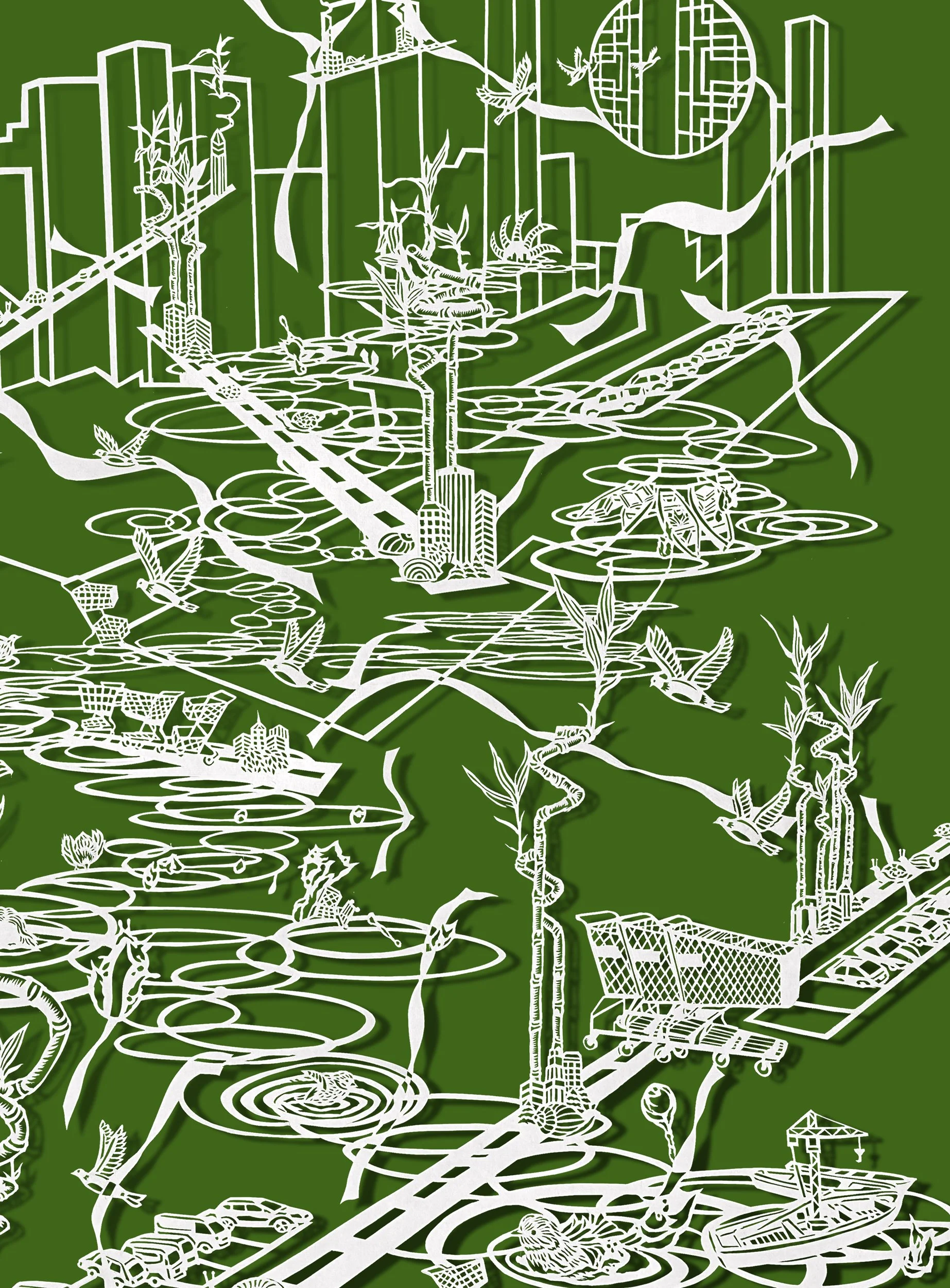 Patience–Lucky Bamboo (Outdoor) 2021Chinese Xuan paper on silk34.5x27.5 in View fullsize View fullsize View fullsize View fullsize